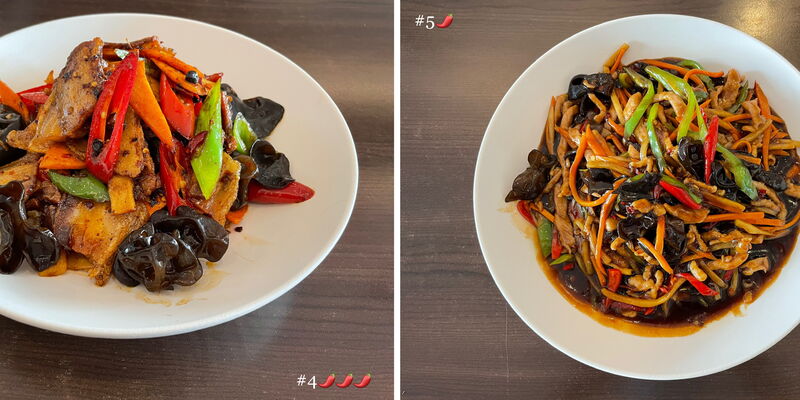 DongWu hat sich entschieden nur Gemüse- oder Hühnerbrühe anzubieten. Der würzige scharfe Geschmack bleibt derselbe (oder auch ohne scharf).